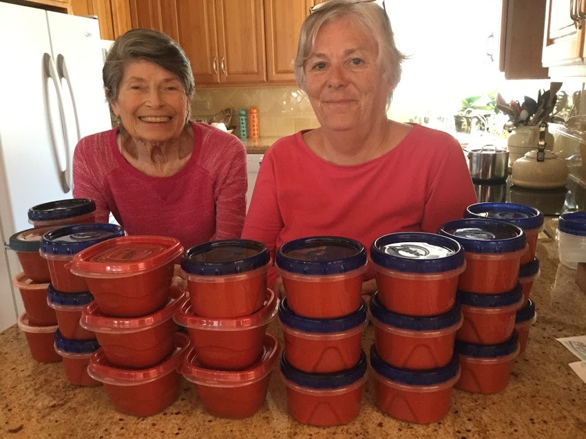 Barbara bought dried red chili pods from www.newmexicanconnection.com (medium and hot) and then brought them to our house to process them. They deseeded the pods, soaked them, blended with water, and strained the skin to create the concentrate. When I saw that they had to wear rubber gloves for protection, I knew they were using the real stuff! We used to buy frozen Bueno Chili and bring it home from Gilbert, AZ in coolers, but this stuff was much hotter (and better) like her family had in Albuquerque, NM. Sandy’s deceased brother George and I only liked the “hot stuff”.