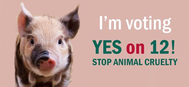 VOTE YES ON 12 October 4, 2018 by Jim at JimsBBS VOTE this year. And if you vote in California, help prevent cruelty to animals by voting YES ON 12. Share this: Click to share on X (Opens in new window) X Click to share on Facebook (Opens in new window) Facebook Like Loading... Related