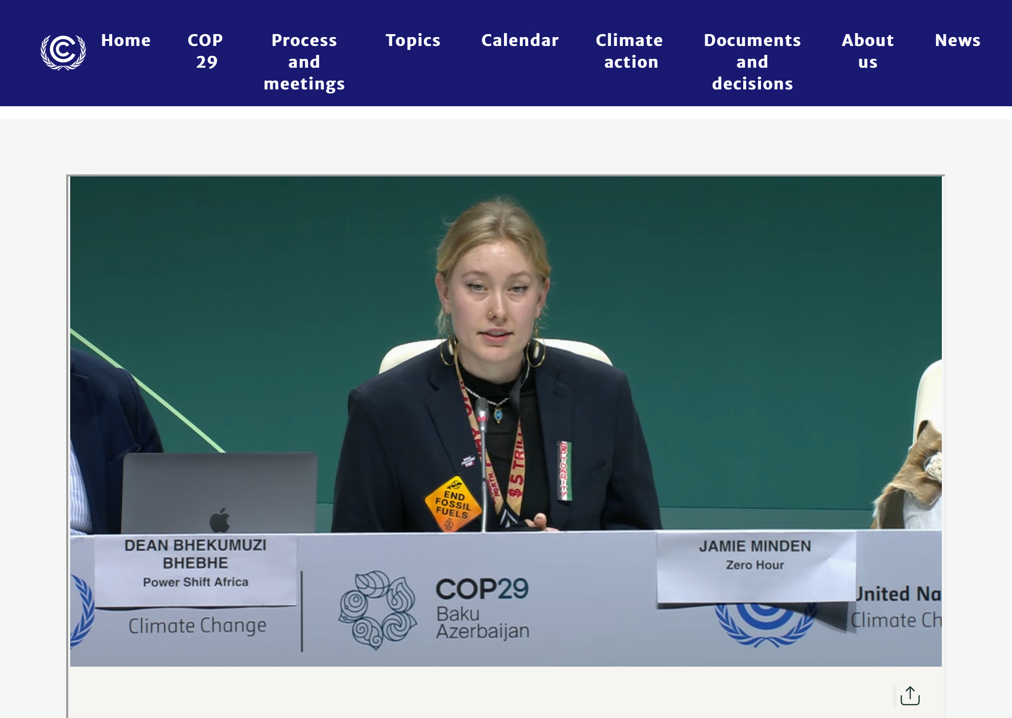 Jamie at COP29 November 11, 2024 by Jim at JimsBBS https://unfccc.int/event/center-for-biological-diversity-9 skip to -1918 for start of her talk. Share this: Click to share on X (Opens in new window) X Click to share on Facebook (Opens in new window) Facebook Like Loading... Related