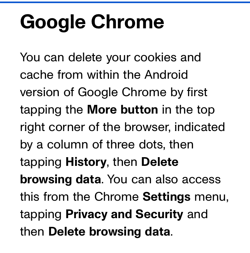 Clear Pixel / Android Chrome Cache